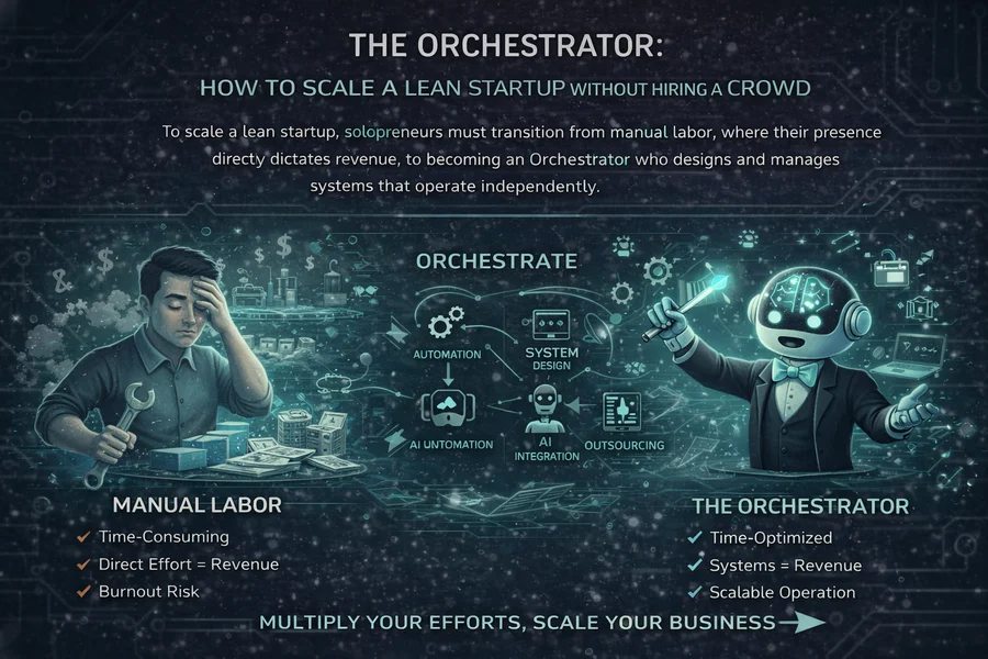 To scale a lean startup in 2026, you must stop being a manual laborer. You need to become an Orchestrator. An Orchestrator doesn't do the work—they architect the system that does the work. They move from "doing tasks" to "owning outcomes." This guide is your blueprint for building that system from the ground up. We are going to look at how to fire yourself from the small stuff, rewrite your business model for the Outcome Economy, and launch a growth engine that moves faster than any traditional agency ever could.